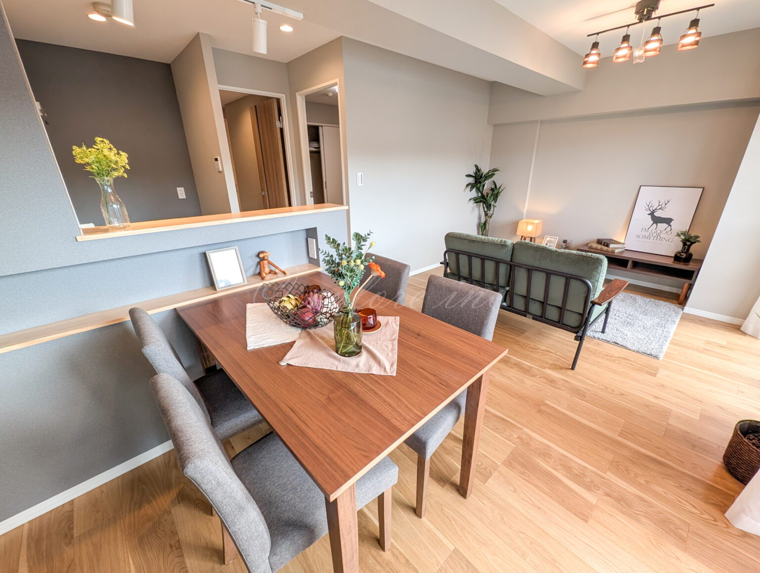 L字型キッチンで調理スペースも広く取っており、和室は洋室変更しています。