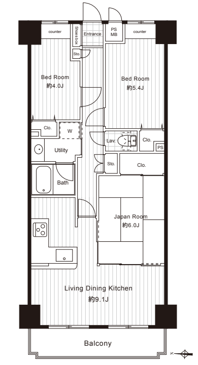 中古マンション3LDKファミリータイプのお部屋のご紹介です。